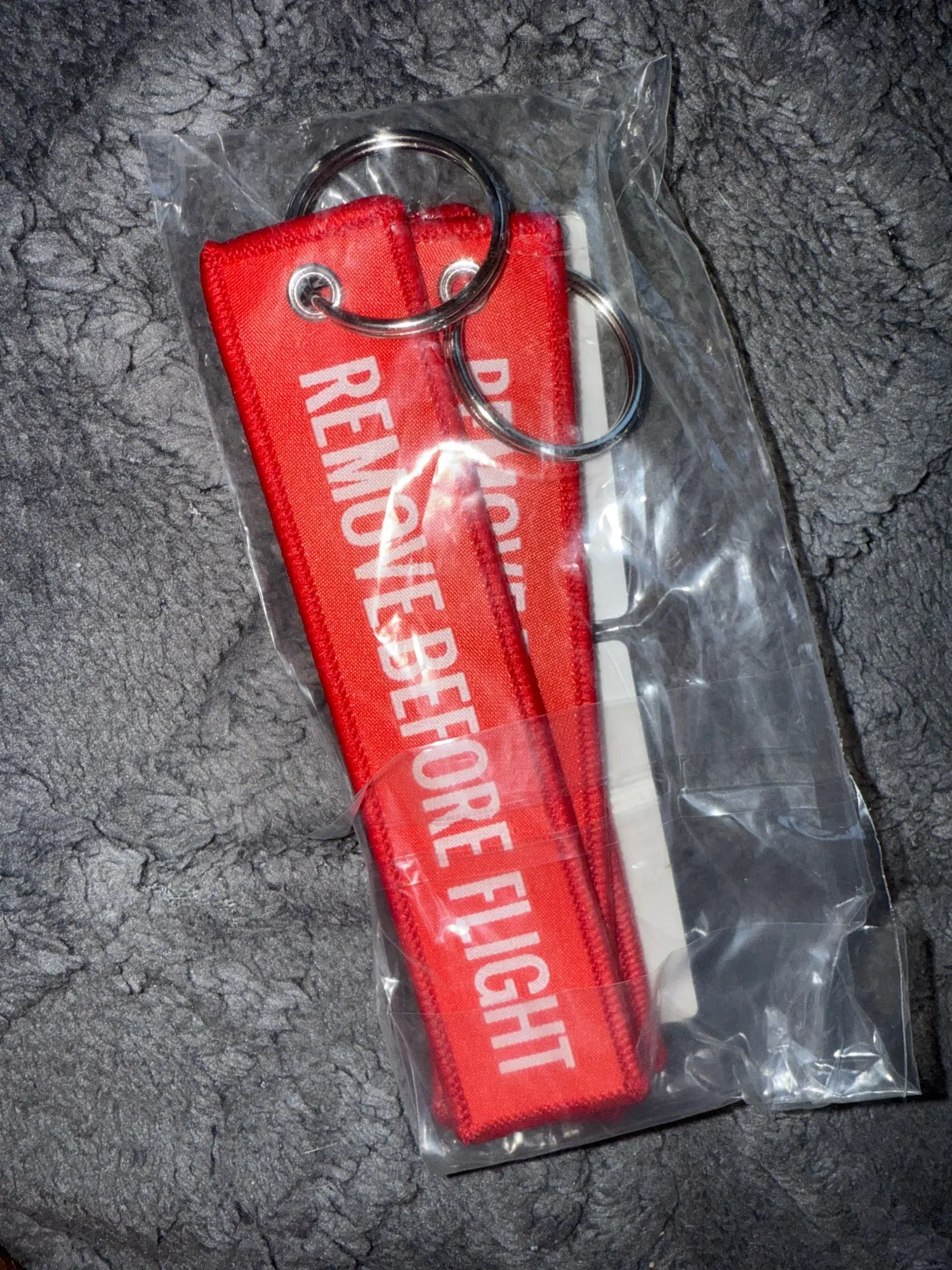 Crafted with double-sided embroidery, the keychain proudly displays the phrase REMOVE BEFORE FLIGHT, making it a standout piece that’s sure to catch the eye. With a size of approximately 13*2.8cm or 13*3cm (allowing for a slight error margin of 0-2mm), it is compact yet noticeable, weighing in at just 10g.